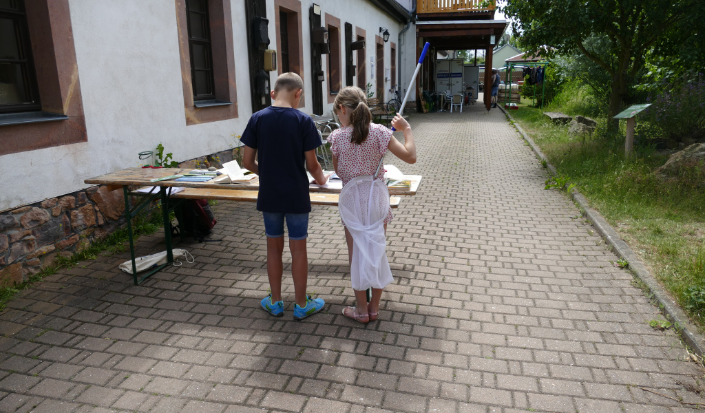 Glücklicher Weise zeigten die jungen Teilnehmer*innen am Teichhaus Motivation und Mut, und ließen sie sich nicht von der überwältige Vielfalt der Insekten einschüchtern. Mit Becherluppen und Zählhilfe begaben wir uns gemeinsam auf die Suche.